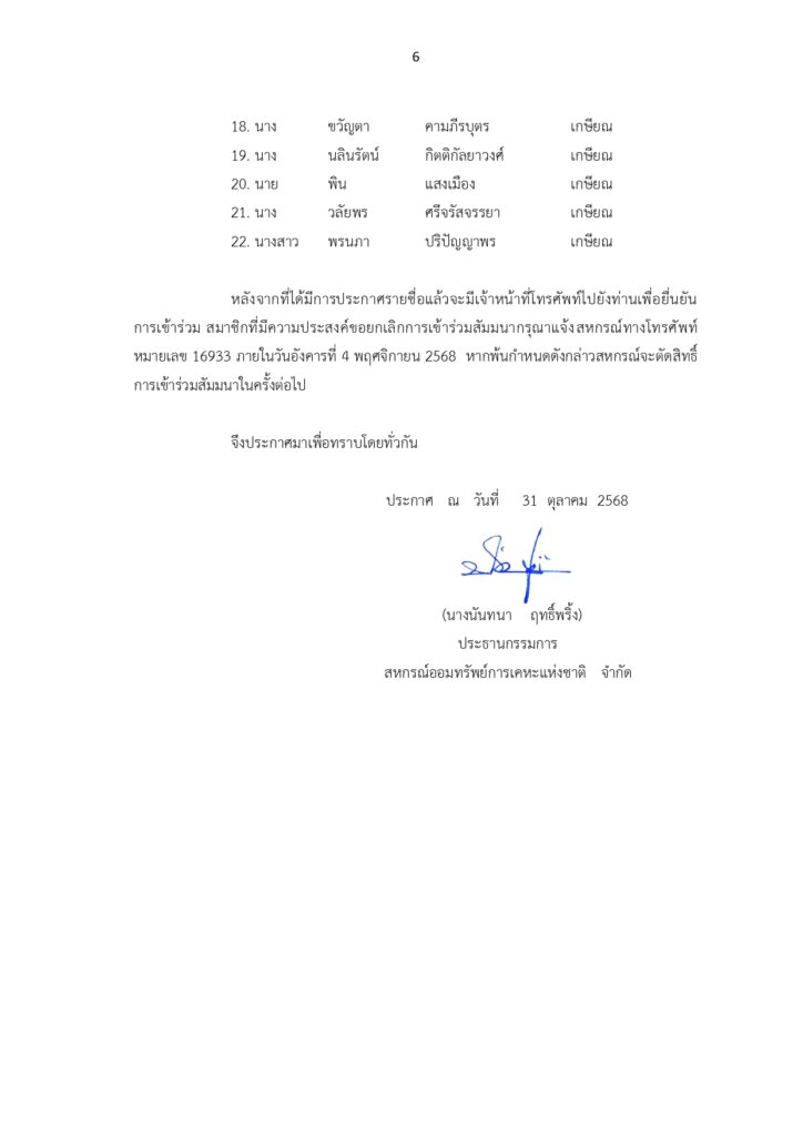 • ประกาศฉบับที่ 015/ 2568  เรื่อง   รายชื่อผู้ได้สิทธิ์เข้าร่วมการอบรมสัมมนาสมาชิก รวมรุ่นเดียว ประจำปี 2568 31 ตุลาคม 2025