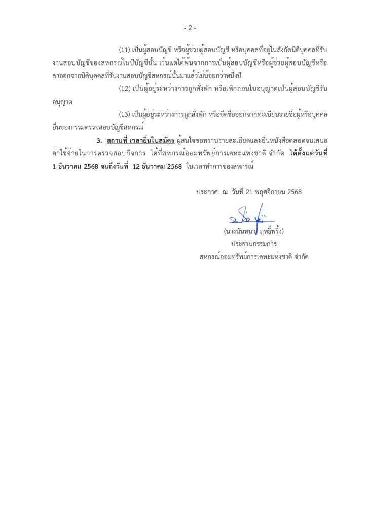 • ประกาศฉบับที่ 016 เรื่อง เชิญผู้สอบบัญชีเสนอสอบบัญชี ปีการเงิน 2569 24 พฤศจิกายน 2025